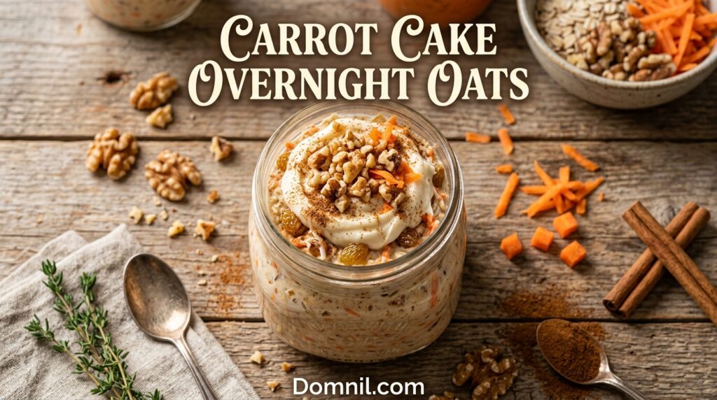 Carrot Cake Overnight Oats is a no-cook breakfast recipe that transforms simple pantry ingredients into a dessert-inspired, nutrient-packed morning meal. It blends rolled oats, grated carrots, warm spices, and creamy dairy or plant-based milk into a thick, pudding-like texture that develops overnight in the refrigerator. The result tastes remarkably like carrot cake—but in a much healthier, fiber-rich form that supports your energy levels throughout the morning.